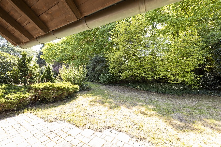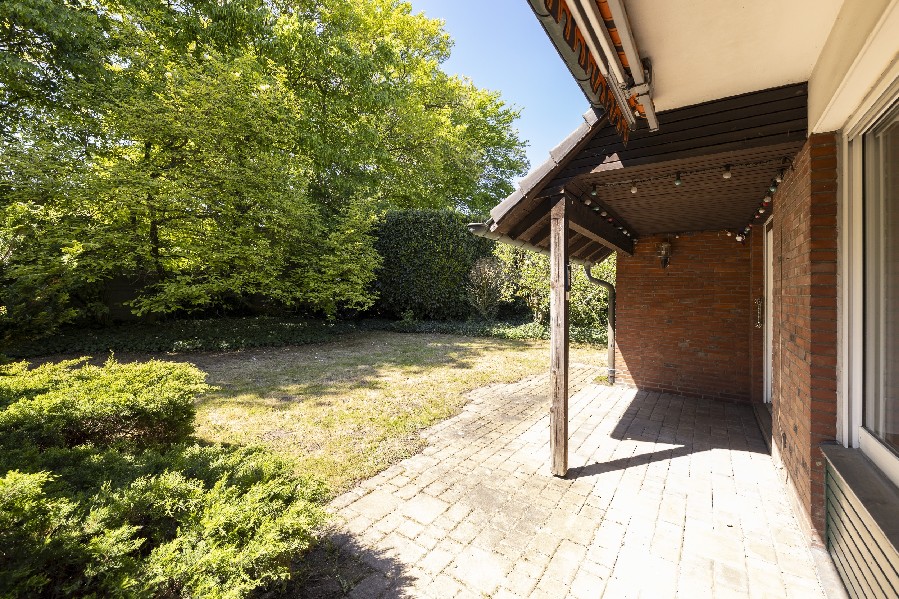 Vom Wohnzimmer aus gelangt man direkt auf die Terrasse und in den großen Garten, der zum Verweilen einlädt.
