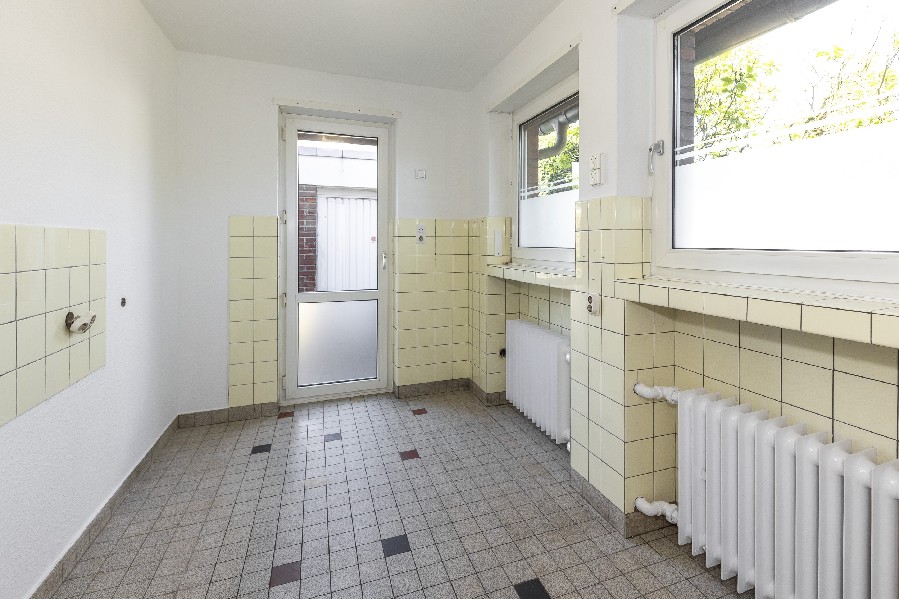 Dank einer seitlichen Tür, gelangt man ohne Umwege in den Garten oder in die Küche.