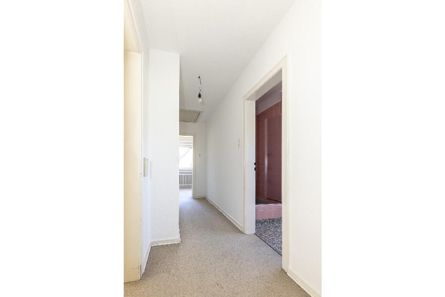 Über den Vorgarten erreichen Sie den Hauseingang. Gerade eingetreten, befinden Sie sich im geräumigen Flur. Vom zentralen Eingangsbereich aus gelangen Sie links zum separaten WC, rechts in die Arbeitsküche und zum großzügigen Wohnbereich mit integriertem Esszimmer. Dieser fast 50m² große Raum bildet das Herzstück der Wohnung. Er ist Dank der großen Fensterfront sehr hell und freundlich, verbindet gemütliches Wohnen mit ausreichend Raum für einen großen Esstisch, an dem die ganze Familie und viele Freunde Platz finden.