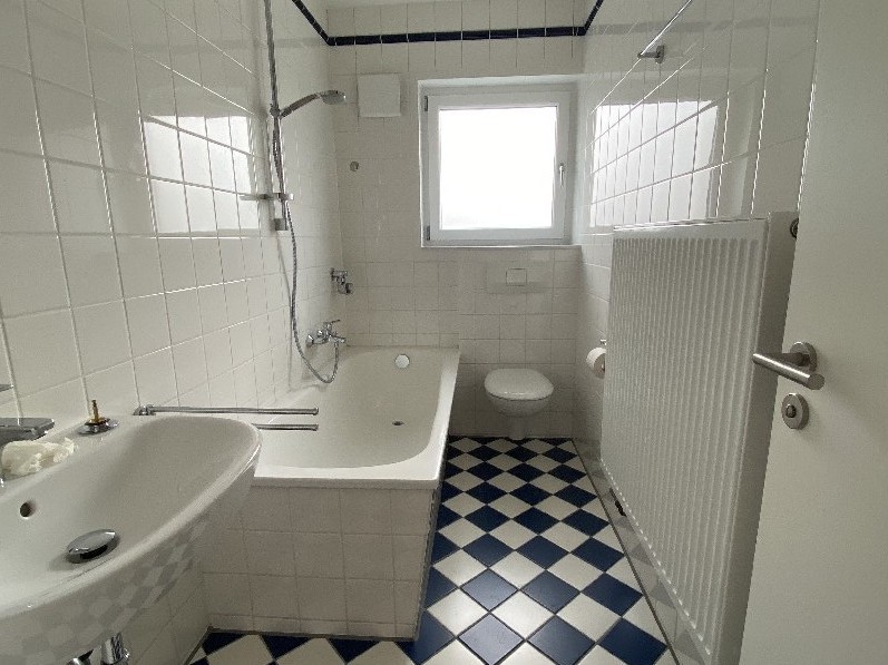 weiße Isolierglasfenster mit besonderem Schallschutz im Schlafzimmer und Wohnzimmer; elektrische Rollläden; moderner, pflegeleichter Vinylboden in Holzoptik und Fliesenboden im Bad; Badezimmer mit Badewanne und Fenster; weiße Innentüren; Gegensprecheinrichtung; Fernsehen über SAT Anlage; geräumiger Mieterkeller; Wasch/Trockenraum, Balkon;